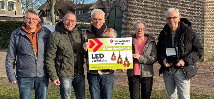 Op 30 december hadden we een afvaardiging van NL Synergie op bezoek om ons een mooie cheque te overhandigen. De bestaande verlichting vertoont steeds meer kuren en met de actie van NL Synergie kunnen we nu overschakelen op energiebesparende verlichting. Hartelijk dank daarvoor!